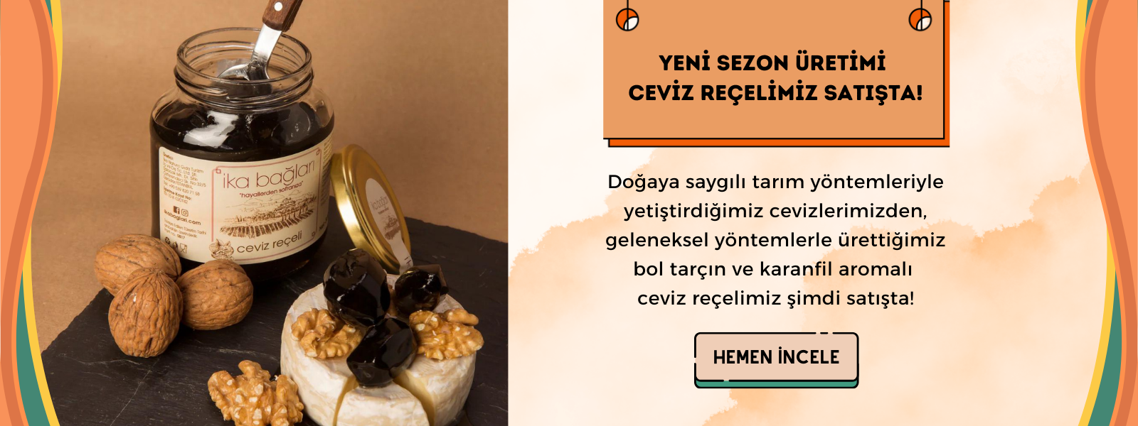 İlk günden itibaren müdavimlerini oluşturan cevizlerimizle ceviz reçellerimizin leziz tadının formülü bize sık sık soruluyor. Bizler bu tatların elde edilmesi için sadece toprağın, güneşin ve suyun yeterli olmadığını biliyoruz. Ceviz ağaçlarımızı her gün özveriyle, sabırla ve doğaya duyduğumuz sevgiyle besliyoruz. Damak kültürümüzde çok farklı bir yeri ve çok geniş bir kullanım alanı olan cevizin gerçek tadını hatırlamanızı sağlayacak ürünlerimiz sizleri bekliyor.